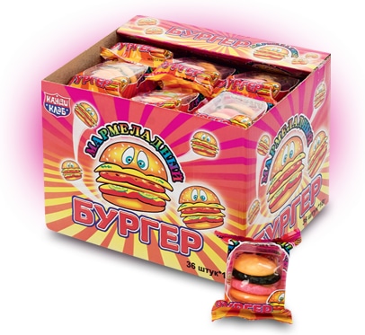 Мармелад жевательный Мармеладный Бургер 18 грамм14,48 руб. за штуку (в упак. 36 шт.) |