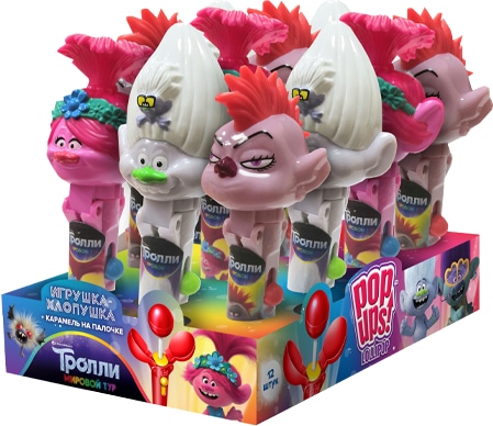 Игрушка-хлопушка с карамелью на палочке Тролли 10 гр0,00 руб. за штуку (в упак. 12 шт.) |