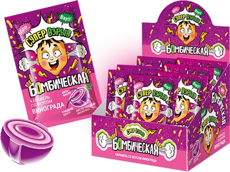Карамель леденцовая Канди Бомбическая Виноград 15 гр0,00 руб. за штуку (в упак. 24 шт.) |