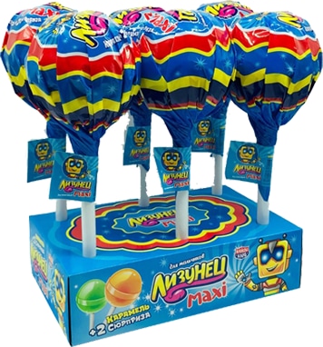 Карамель на палочке "Лизунец MAXI" для мальчиков 90 грамм164,22 руб. за штуку (в упак. 24 шт.) |