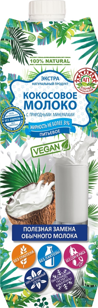 Кокосовое молоко питьевое 3% Азбука Продуктов 1000 мл232,63 руб. за штуку (в упак. 6 шт.) |