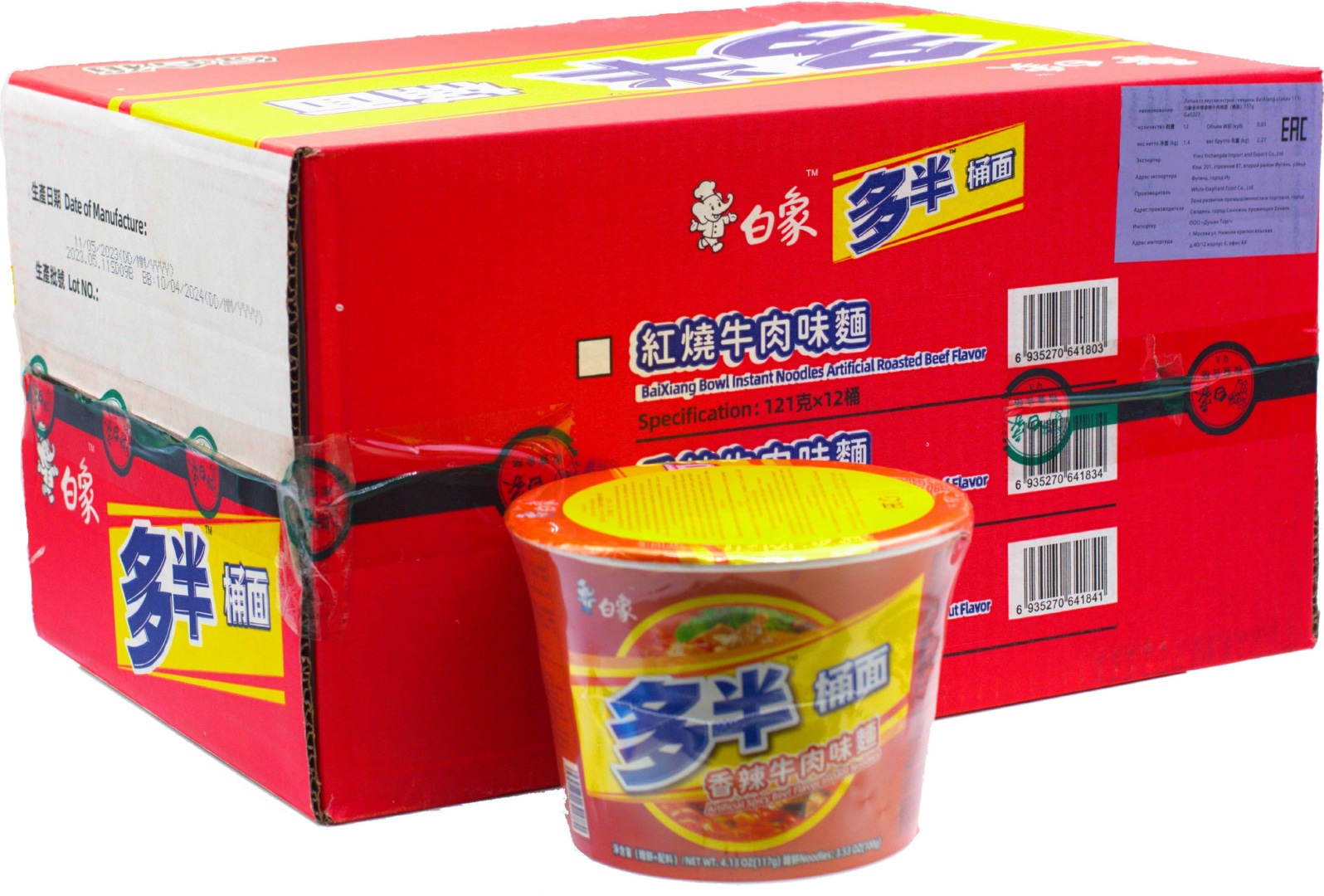 Лапша BaiXiang со вкусом острой говядины 117 гр стакан112,50 руб. за штуку (в упак. 12 шт.) |
