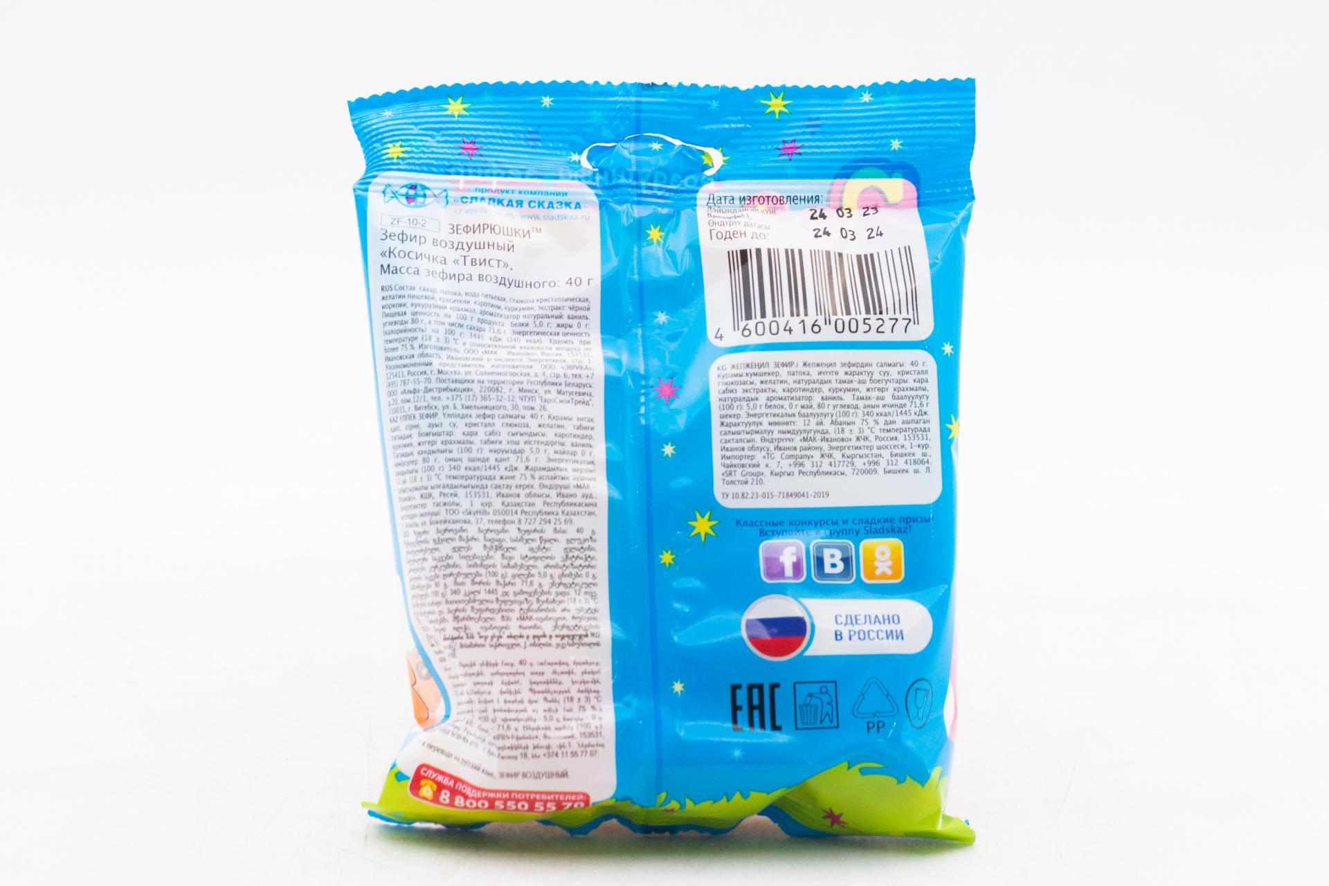 Маршмеллоу Зефирюшки Косичка твист 40 гр46,31 руб. за штуку (в упак. 24 шт.) |