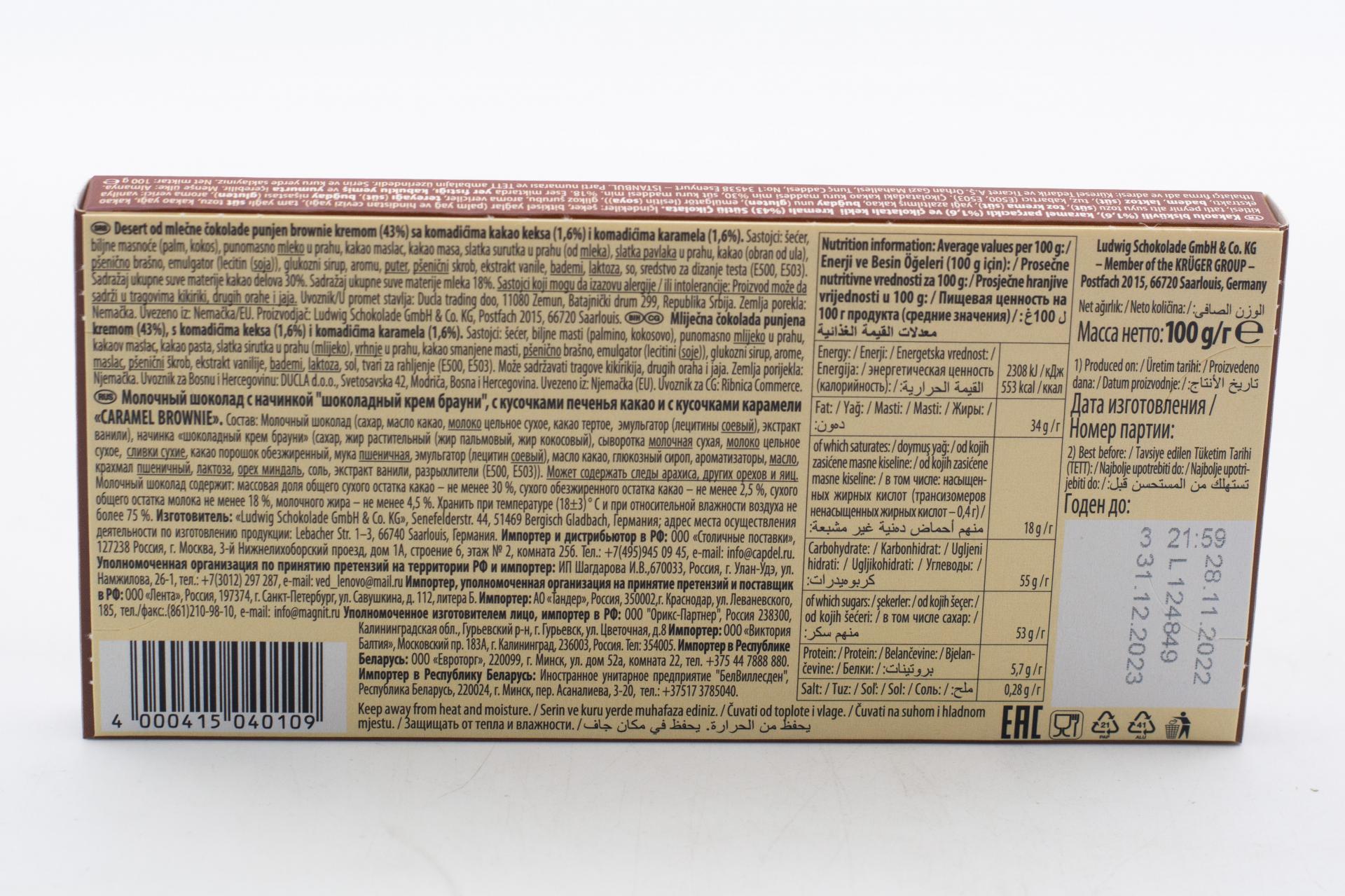 Молочный шоколад Schogetten Caramel Brownie Chocolate "Карамельное пирожное" 100грамм223,61 руб. за штуку (в упак. 15 шт.) |
