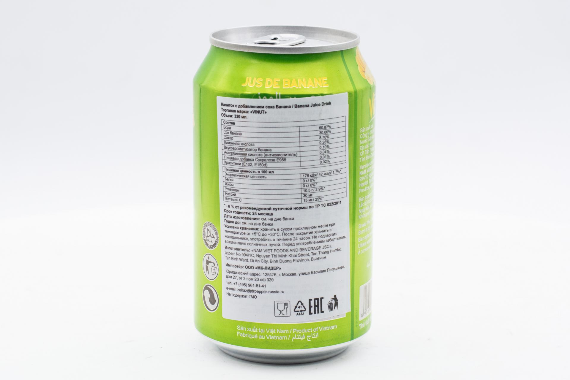 Напиток сокосодержащий Vinut с соком банана 330мл49,99 руб. за штуку (в упак. 24 шт.) |