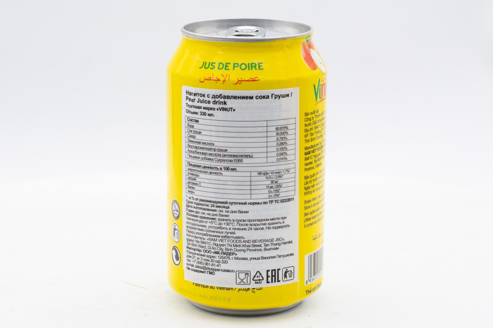 Напиток сокосодержащий Vinut с соком груши 330мл49,99 руб. за штуку (в упак. 24 шт.) |
