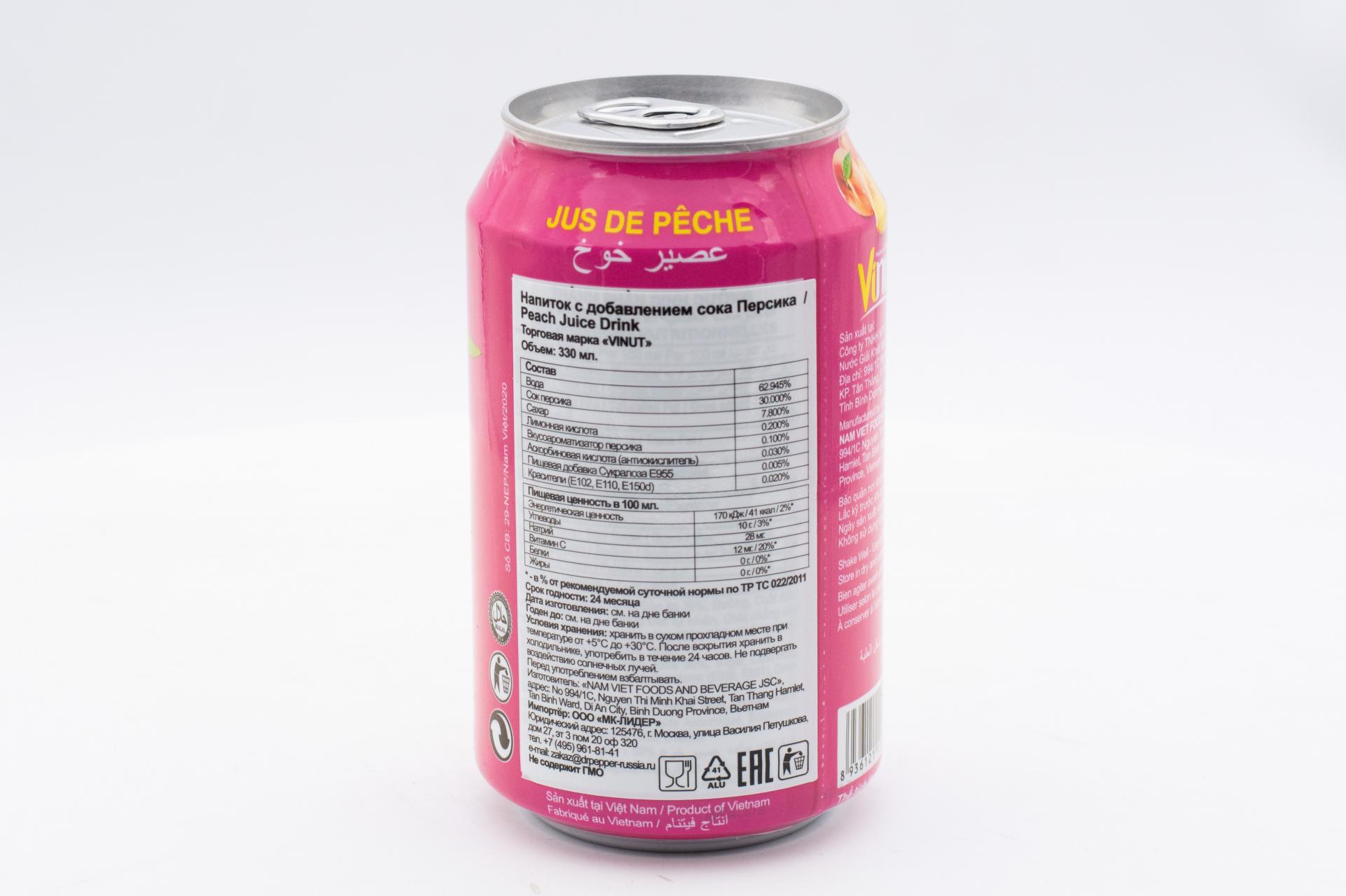 Напиток сокосодержащий VINUT со вкусом Персика 330 мл0,00 руб. за штуку (в упак. 24 шт.) |
