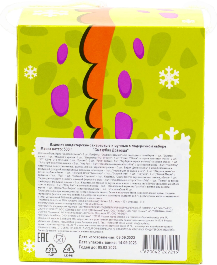 Новогодний подарок Под'Ари Смекубик Дракоша 500 гр картон0,00 руб. за штуку (в упак. 6 шт.) |