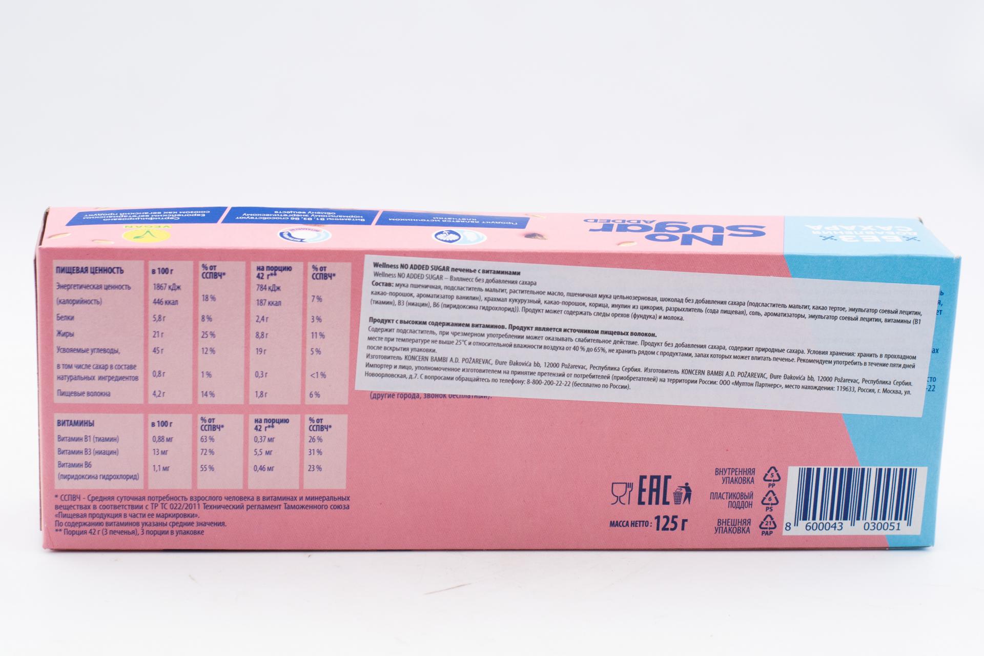 Печенье Wellness цельнозерновое без сахара с витаминами 125 гр0,00 руб. за штуку (в упак. 15 шт.) |