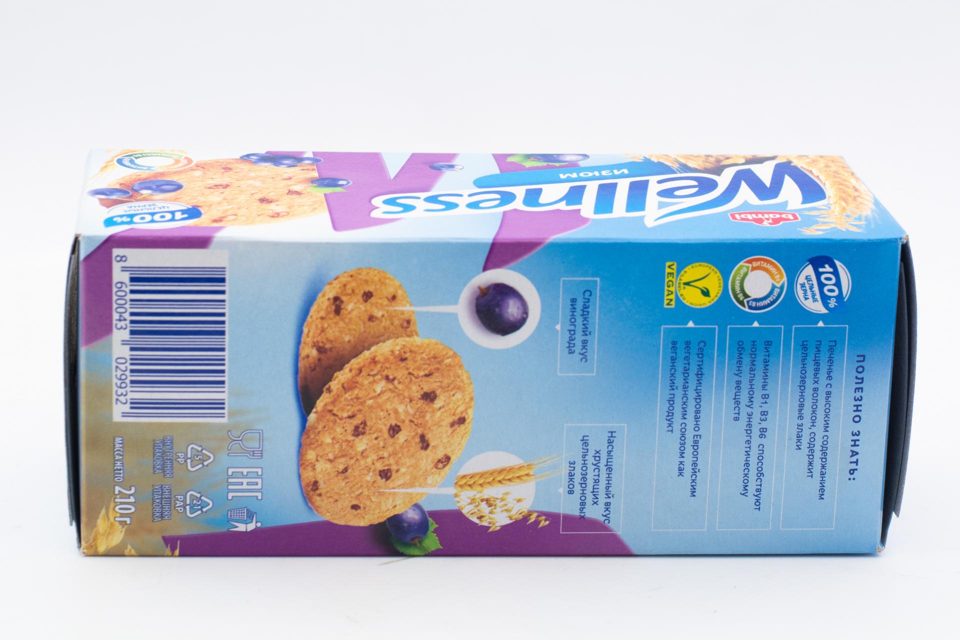 Печенье Wellness цельнозерновое с изюмом и витаминами 210 гр0,00 руб. за штуку (в упак. 16 шт.) |