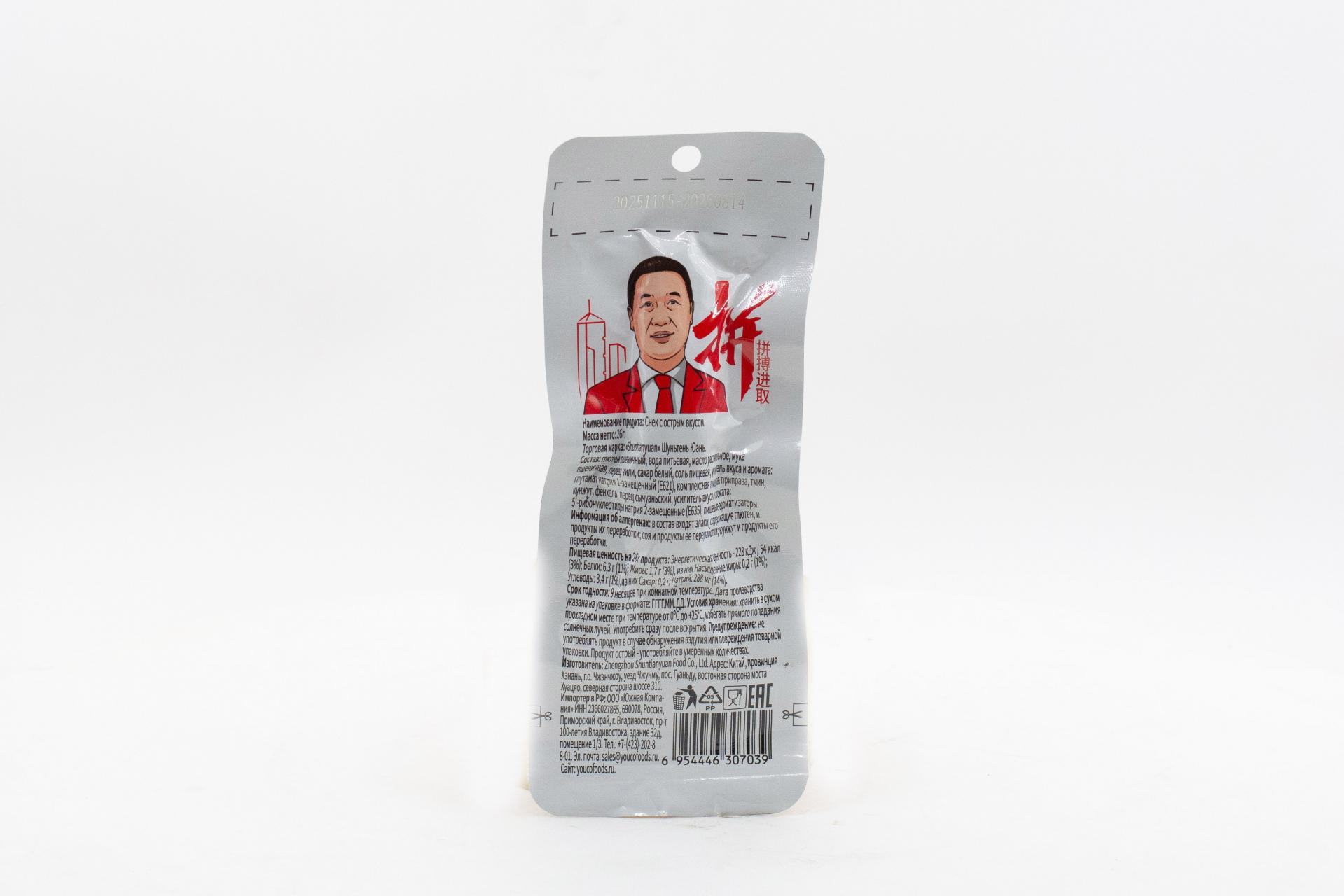 Снек Шуньтень Юань с острым вкусом (Китай) 26г23,66 руб. за штуку (в упак. 20 шт.) |