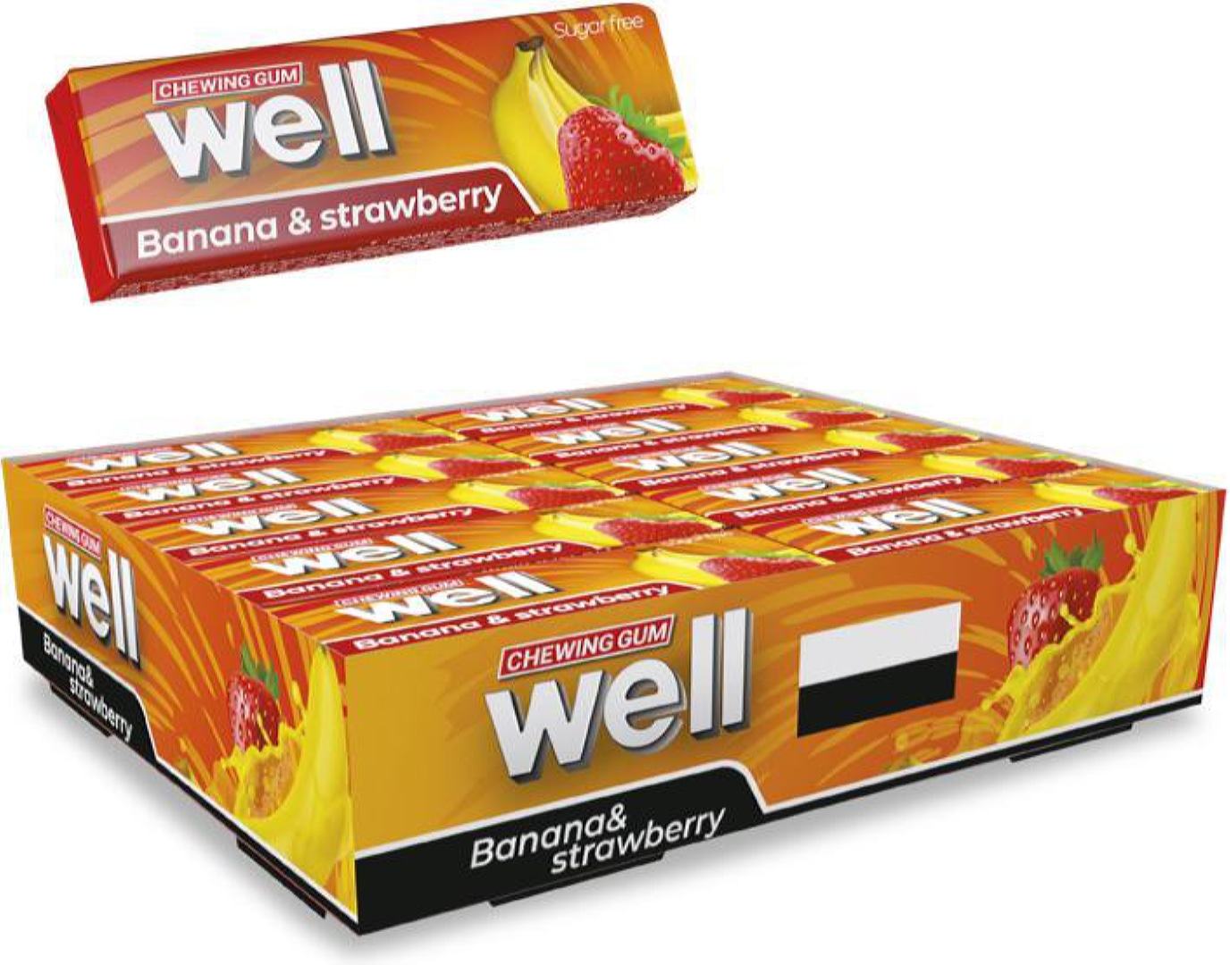 Жевательная резинка Well Клубника и Банан без сахара 12,65 гр14,38 руб. за штуку (в упак. 30 шт.) |
