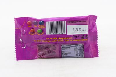 ягоды Вес нетто 38 гр. Состав: сахар, сироп глюкозы, пальмовый жир, винная кислота винная, лимонная кислота, яблочная кислота; Модифицированная прочность. Декстрин, мальтодекстрин, ароматизаторы, регулятор кислотности тринатрийцитрат, красящий агент карнаубский воск, красители. Энергетиеская ценность: 398,00 килокалорий (ккал) теплотворная способность: 1,688,00 килоджоулей (кДж) углеводов: 88,20 углеводов, из которых сахара: 87,40 жира: 4,20 жира, из которых насыщенные жиры: 2,40 соли: 0, 03 белка: 0,00 Производитель: Wrigley GmbH Biberger Str. 18 82008 Unterhaching (D) Хранить в сухом месте. Общий срок годности:24 месяцев.Годен до:См.на упаковке