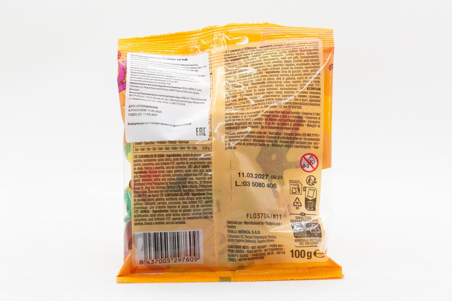 Жевательный мармелад Trolli Осьминог (Испания) 100г123,50 руб. за штуку (в упак. 12 шт.) |